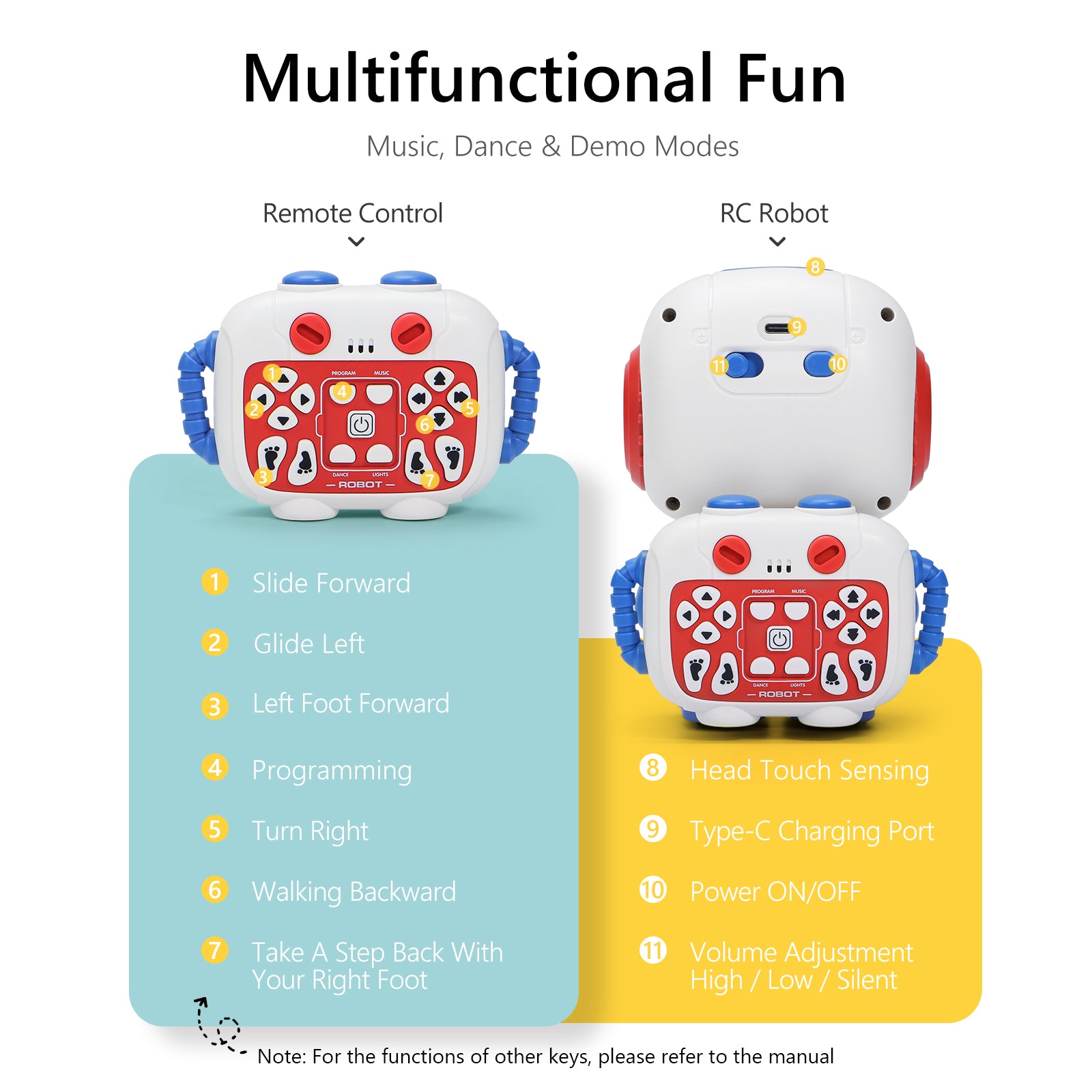 🎮 MULTI-FUNCTIONAL REMOTE CONTROL – Jetpack-shaped 2.4G remote allows kids to command robot movements: glide, moonwalk, or dance! Responsive touch sensors enable interactive play, enhancing hand-eye coordination for ages 4-6